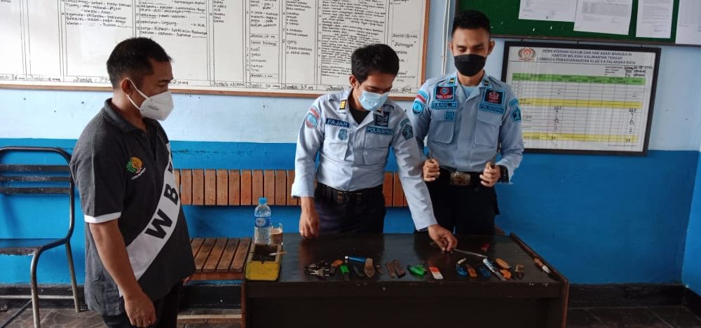 KABARKALIMAMTAN1, PALANGKA RAYA – Dalam upaya menjaga kondisi keamanan dan ketertiban di lingkungan Lembaga Pemasyarakatan (Lapas) Kelas IIA Palangka Raya tetap kondusif, regu pengamanan menggelar razia insidentil di blok hunian warga binaan pemasyarkatan (WBP), Kamis (8/9/2022).